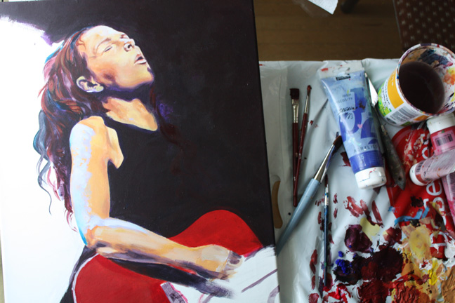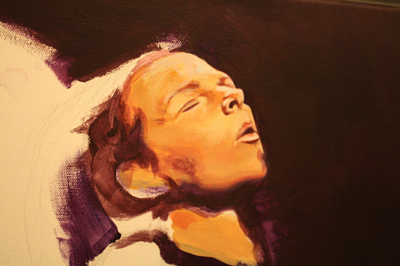 Since I’m on a photo-doc roll here’s a commissioned painting I also finished on tuesday. I would love to do more portraits of musicians. Watch it grow…..